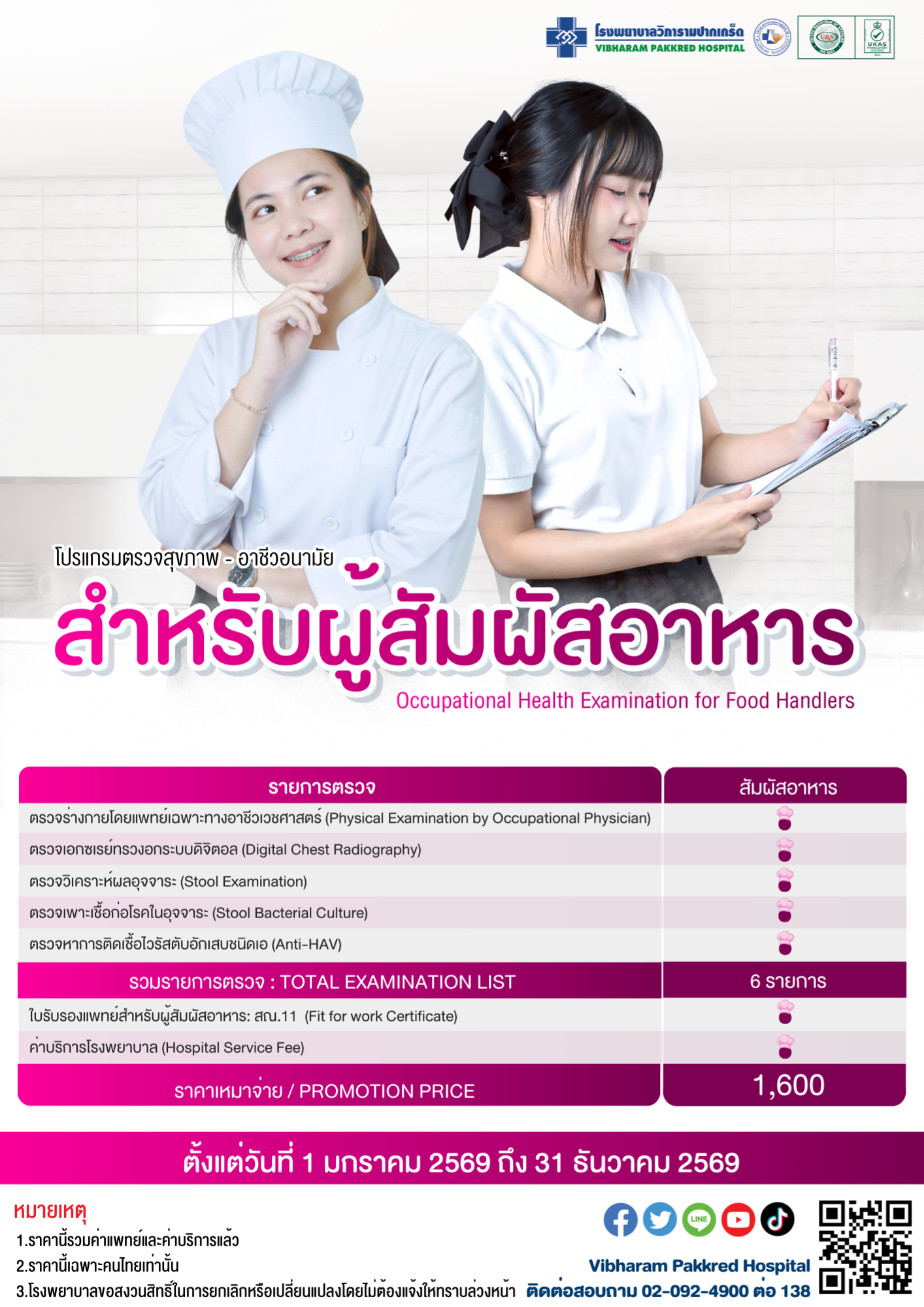 โปรแกรมตรวจสุขภาพสำหรับผู้สัมผัสอาหาร ประจำปี 2569
